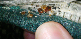 - l'apparition d'excréments ou de restes de la couverture chitineuse d'insectes sous les lits et près des plinthes.